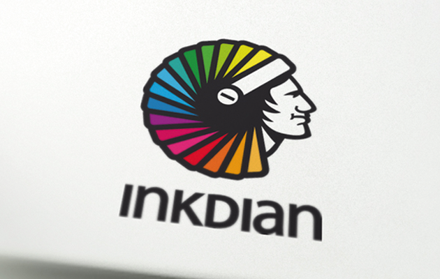 Creative logo for print services. The creative indian logo design features a color swatch book designed as a head dress.